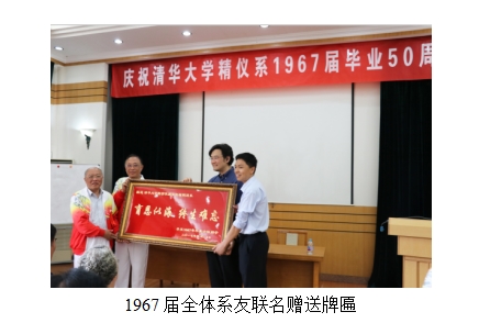 随后,1967届全体系友联名赠送牌匾,上书“育恩四海,终生难忘——敬赠清华大学精密仪器及机械制造系”以显示对母校和精仪系的赤诚感恩之情。